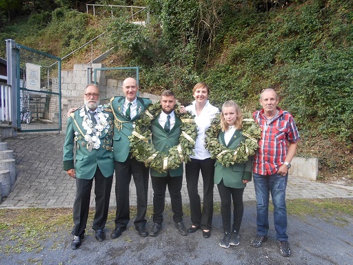 Der Einladung der Rheinecker Schützen waren gefolgt, der Diözesanbundesmeister Paul-Robert Vogel aus Leutesdorf, Bezirkspräses, Dechant Dr. Johannes Meyer aus Remagen, der Präses der Bruderschaft, Pastor Michael Hoellen.
